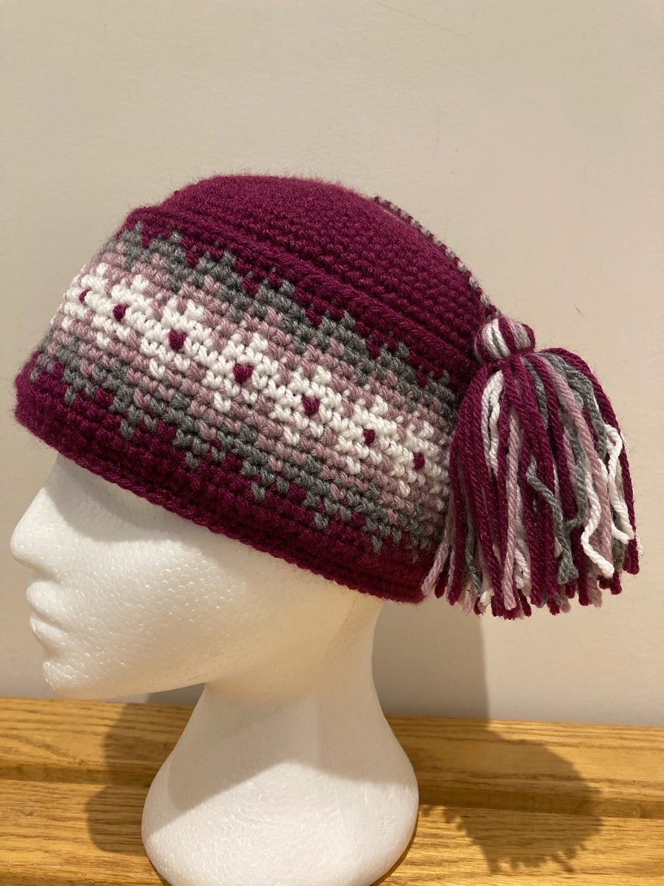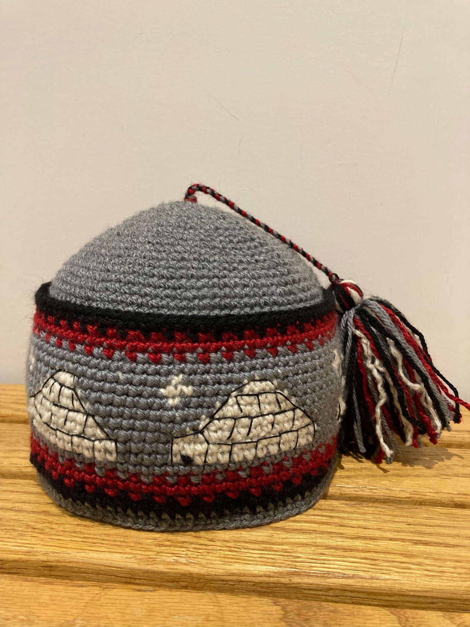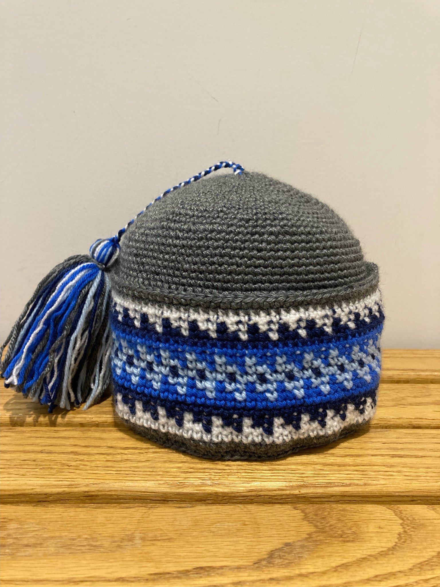 Nassak classique « fléché ». C’est une taille moyenne (22 pouces de tour) et il est 100% acrylique.